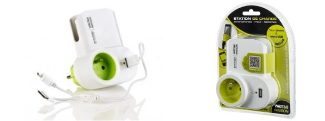 Station de charge universelle pour tous types de mobiles, mp3, mp4, iPod, ... Recharge efficacement tous les appareils basse tension sans condamner la prise électrique murale.